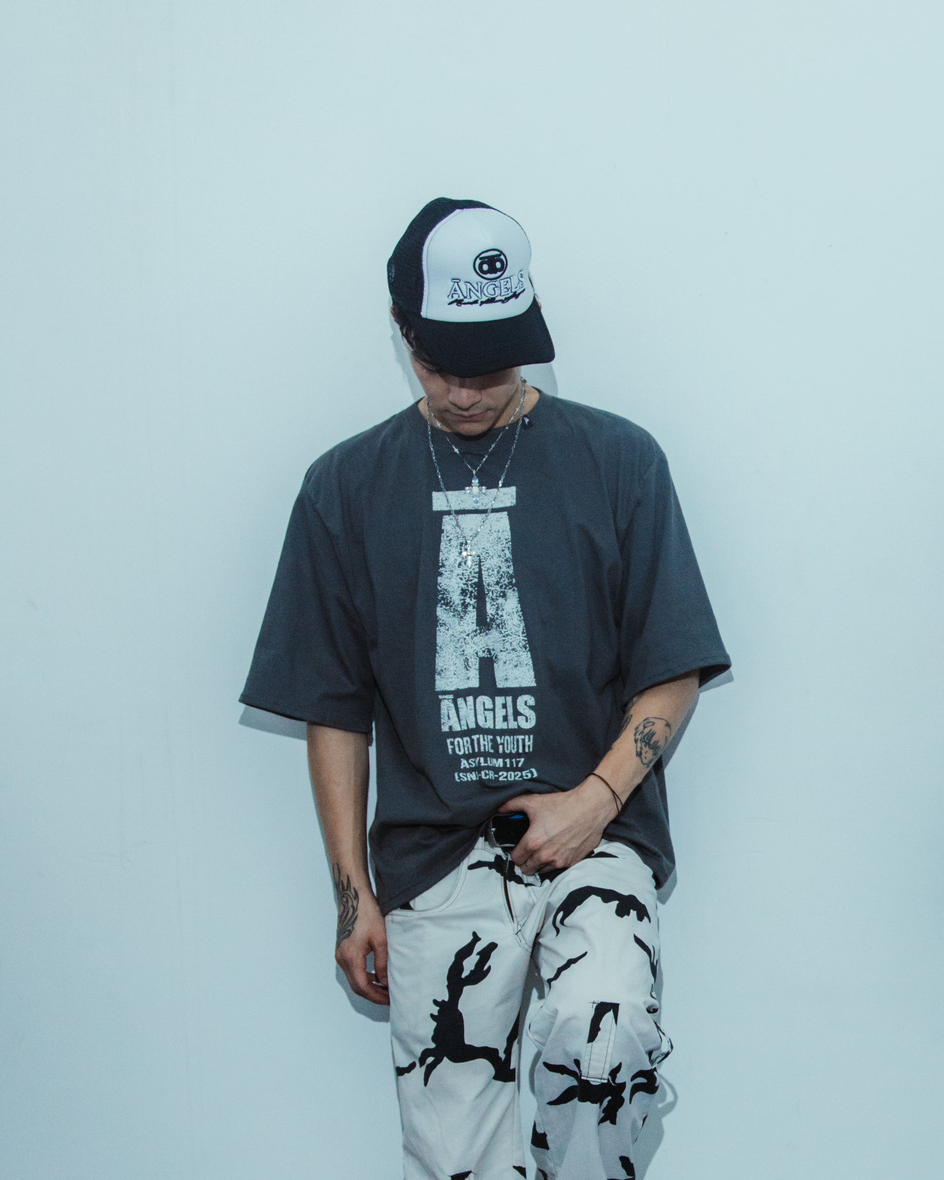 - Serigrafia ĀSYLUM en la parte delantera