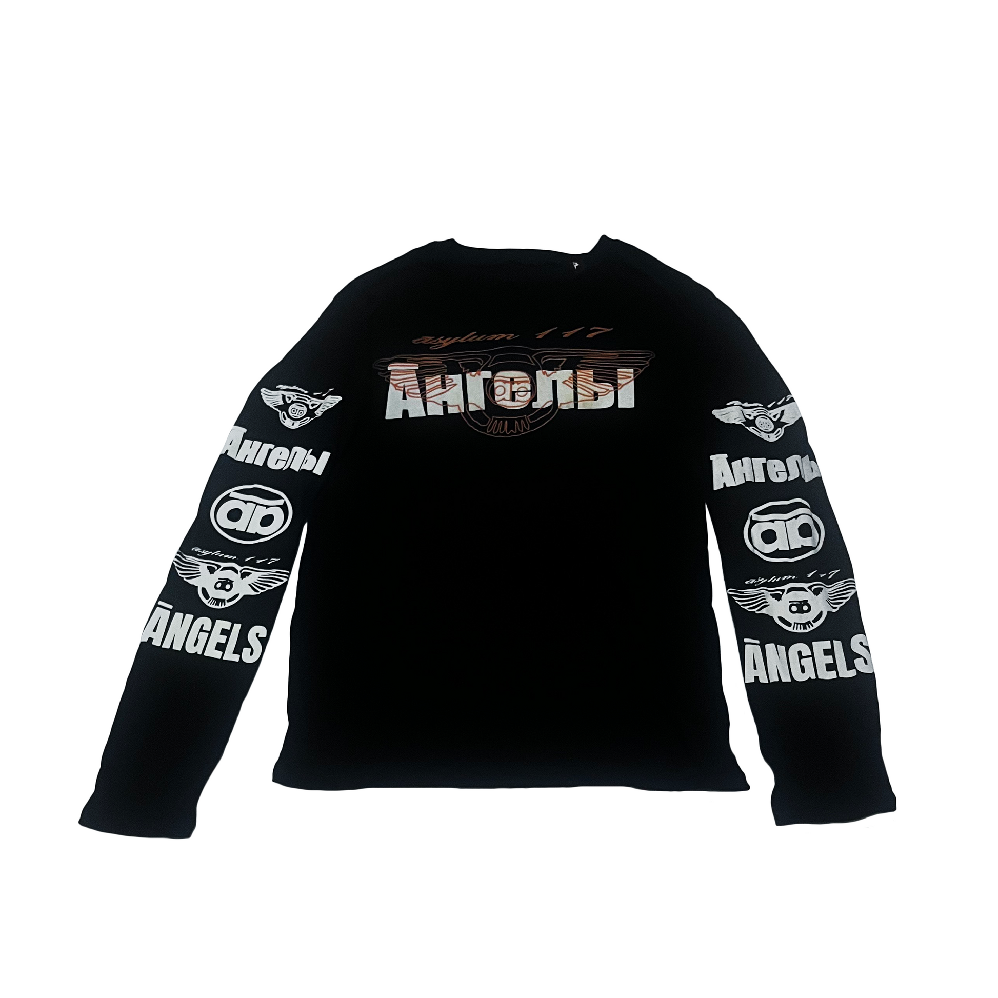 - Serigrafia ĀNGELS en la parte delantera y mangas