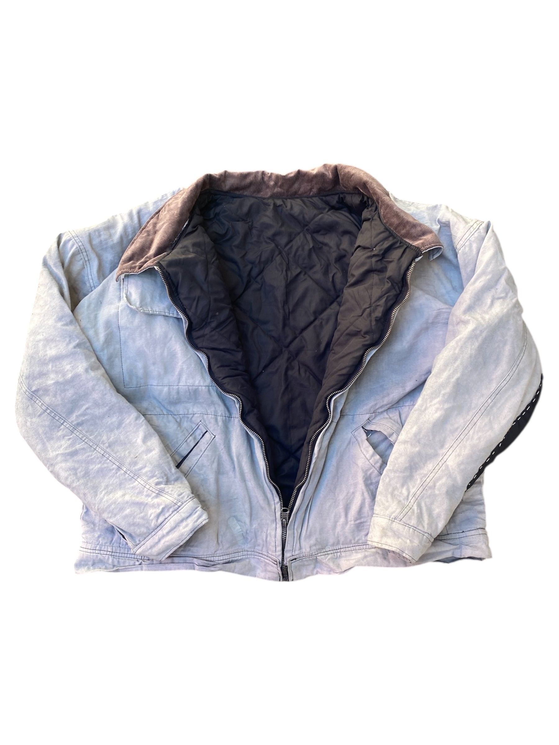 teñida a un gris claro, cuello de corduroy, interior forrado y acolchado